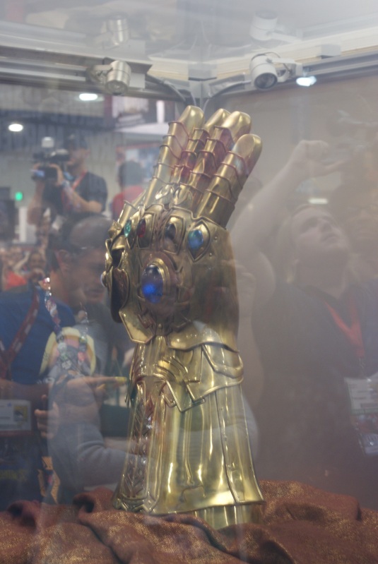 L’objet était visible sur le stand de Thor… Va-t-on réellement le voir dans le film ? Oui : le Gant sera visible pour la première fois dans Thor (donc nous le reverrons ?!). Mais aura-t-il un rôle important dans l’histoire ? A mon avis, il pourrait s’agir d’un simple « objet cameo ». Nous savons depuis ce week-end qu’Odin possède dans son trésor le Cube Cosmique (volé par Crâne Rouge dans l’extrait de Captain America diffusé au Comic Con). Il est possible que le Gant soit lui aussi un élément du trésor d’Odin… Là où la chose pourrait devenir intéressante, c’est si le Gant devient un élément central de l’histoire, dans le film The Avengers par exemple. Ce serait l’occasion d’avoir un méchant surpuissant et cosmique : Thanos, le porteur le plus célèbre de cet objet… Mais ce ne sont que des hypothèses !