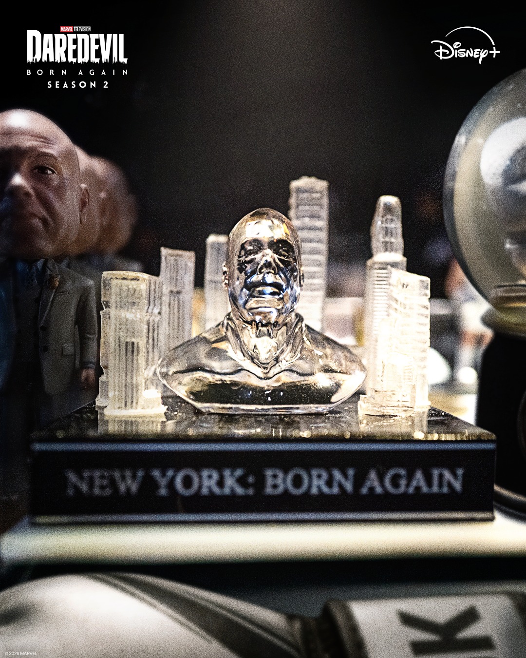 La série Daredevil : Born Again est diffusée chaque mercredi sur Disney+, avec Charlie Cox (Matt Murdock/Daredevil), Deborah Ann Woll (Karen Page), Nikki M. James (Kirsten McDuffie), Margarita Levieva (Heather Glenn), Krysten Ritter (Jessica Jones), Vincent D’Onofrio (Wilson Fisk/Kingpin), Ayelet Zurer (Vanessa Fisk), Michael Gandolfini (Daniel Blake) et Wilson Bethel (Benjamin ‘Dex’ Poindexter/Bullseye).