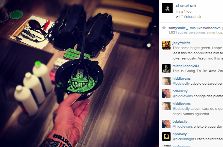 NiradZedjati a écrit:Ouaip, d'ailleurs le coiffeur de Leto a "instagramé" le type de teinture verte qui sera utilisée pour le film...