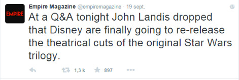 DarkKane a écrit:Maintenant que Lucas n'a plus le pouvoir sur STAR WARS, on peut espérer avoir enfin les versions appréciés des fans (le mieux serait des BluRay avec choix entre 77/83 et 97)