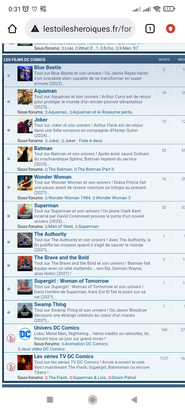 - la section s'appelle "les films" alors qu'il y a une sous section sur les séries, une sous sous section sur les jeux vidéos, etc. :arrow: la renommer simplement "DC Comics" et en vrai cette suggestion ci vaut également pour la section "Les films Marvel" :arrow: "Marvel"