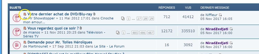 Il suffit ensuite de cliquer sur le petit icône rouge à gauche du nom du topic afin d'atteindre le premier des messages non lus. Ce qui est très pratique pour pouvoir suivre aisément le fil des discussions et/ou des annonces sans être obligé d'aller et venir dans les arcanes du forum. ;)