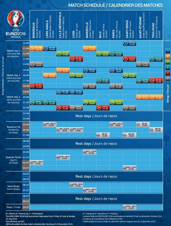 Pour rappel le tirage au sort de l'EURO 2016 aura lieu à 18H, voici les 4 chapeaux...