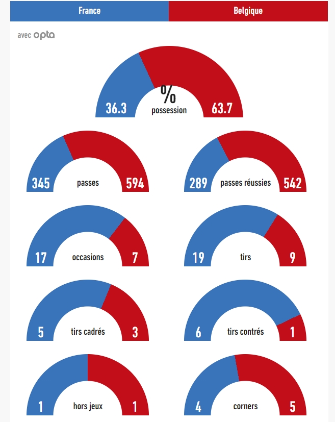 Il y a plus d'occasions débuts de la France que de la Belgique, la possession de balle c'est bien, mais le réalisme c'est mieux.