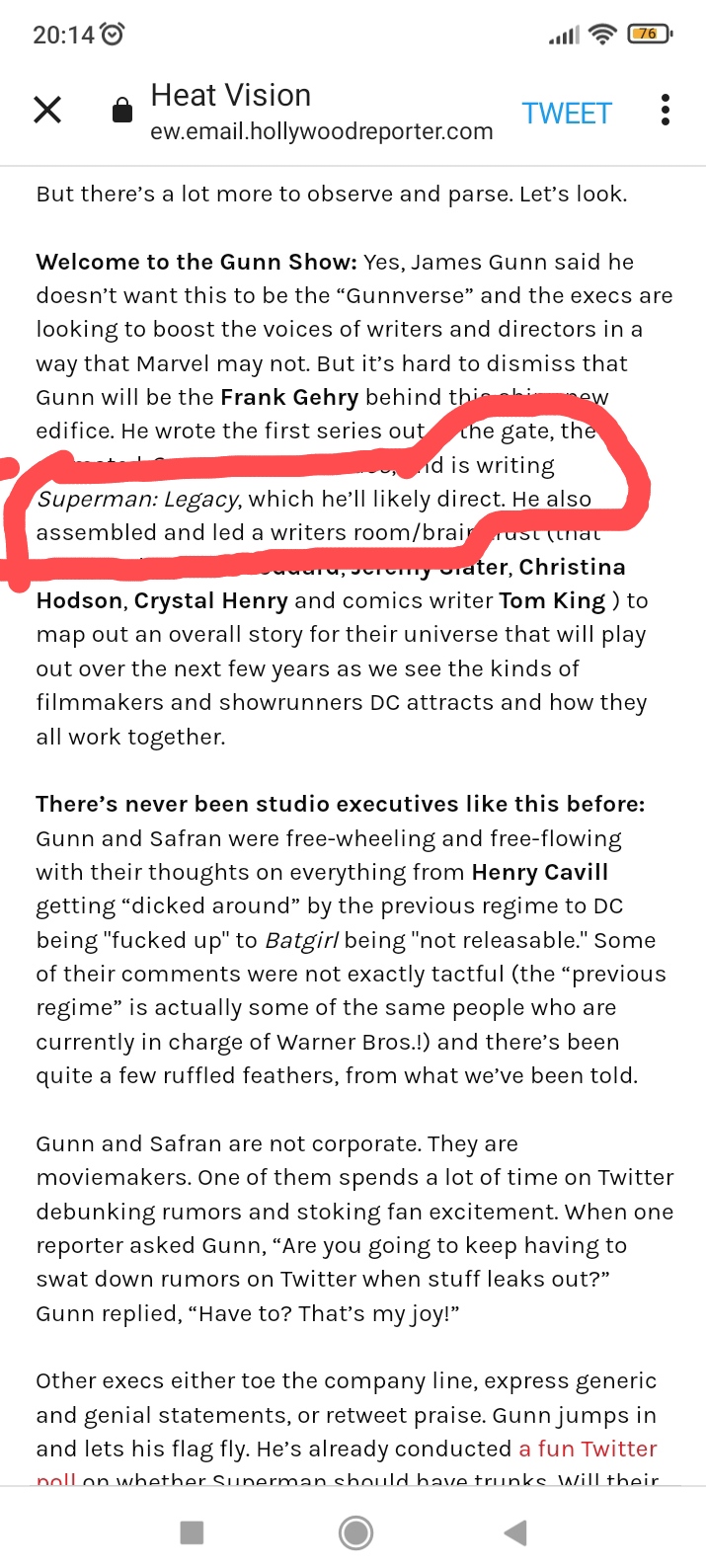Pas vraiment une surprise vu les bouts d'info qu'on avait déjà eues. Gunn a l'air de s'inspirer du All Star Superman de Morrison qui synthétique très bien l'esprit du perso.