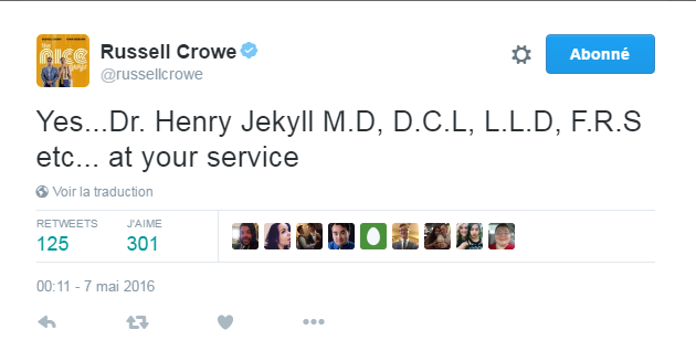 Supernad a écrit:Russell Crowe est en négociation pour rejoindre le casting du reboot de la Momie . Avec Tom Cruse , Johnny Deep et maintenant Russell Crowe je commence à m'intéresser de prés à ce monster-universe .