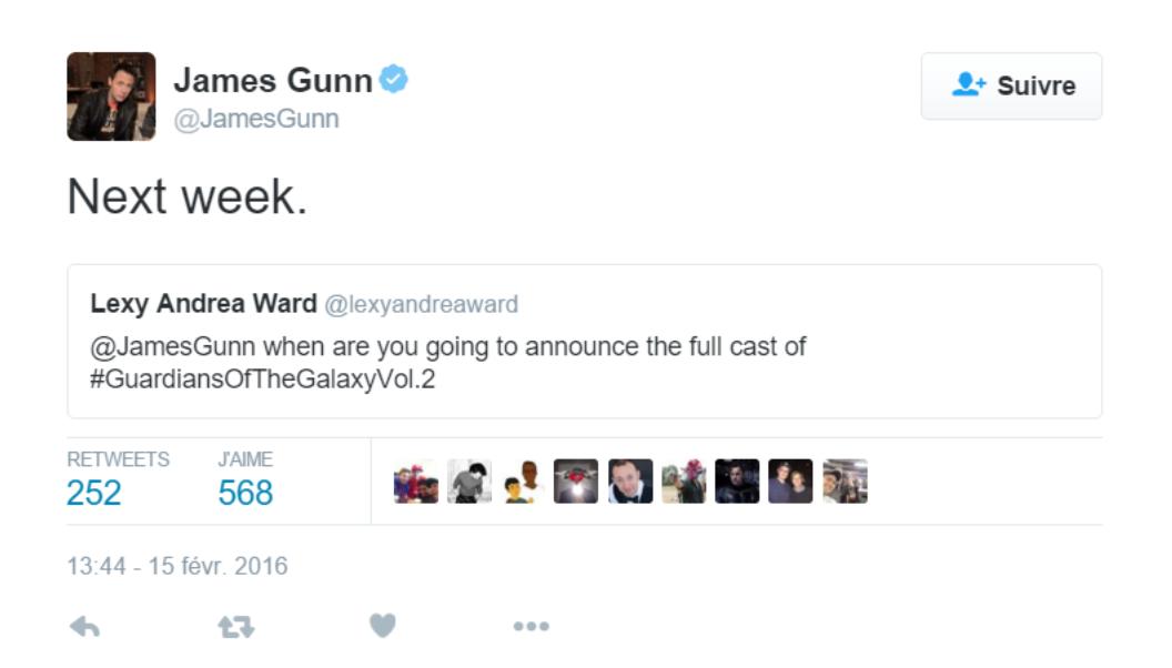 Et c’est dans la boîte pour Kurt Russell sur #GOTGVol2. Un pur talent et un vrai plaisir, dans tous les sens du terme. J’admets avoir un peu la larme à l’œil ».
