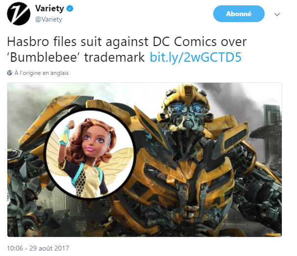 C'est le truc :wtf: du jour, hasbro qui attaque DC en justice pour l'utilisation, en produit dérivés, du personnage DC Bumblebee.