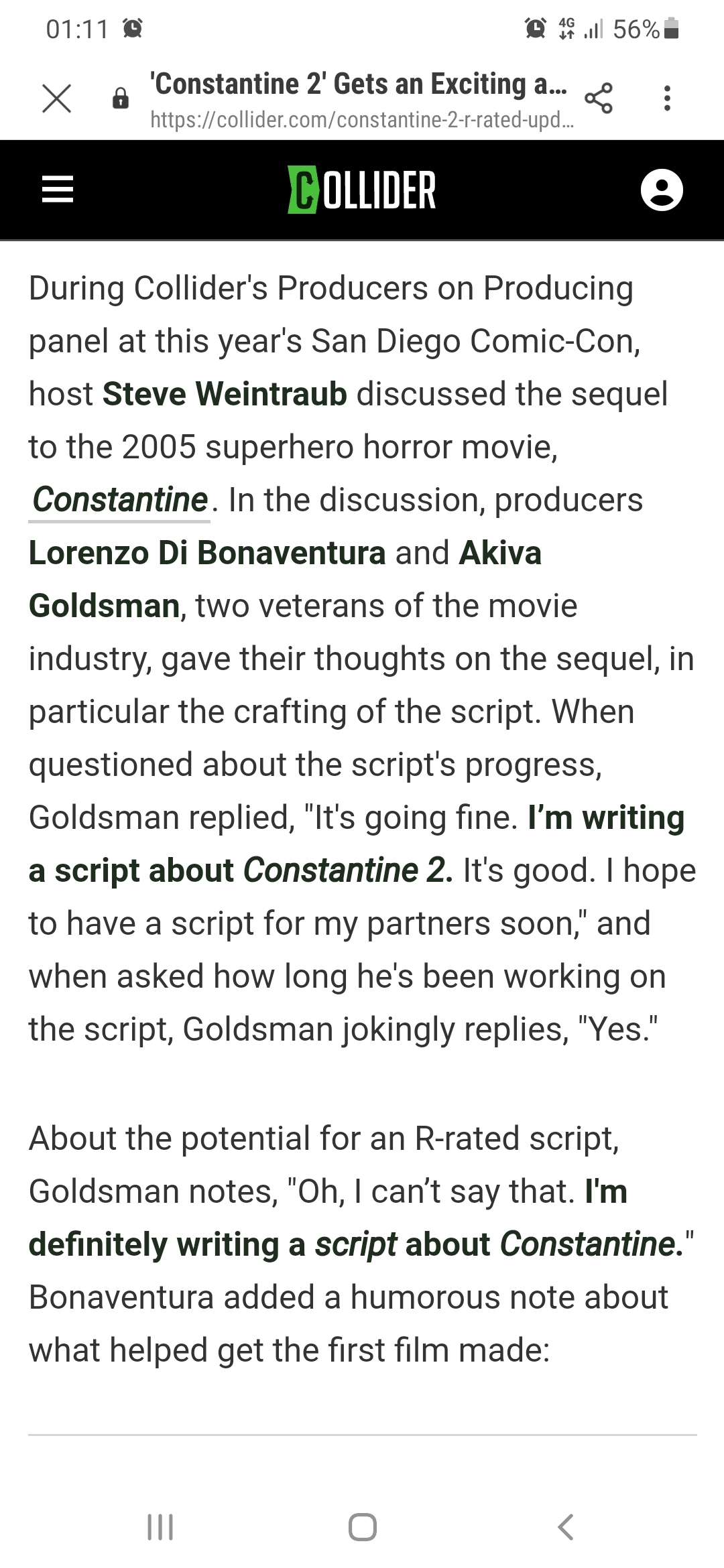 "I will say we are closer than ever to being able to do a sequel, which is a great thing. And Akiva, Keanu and I are super, super excited about it."