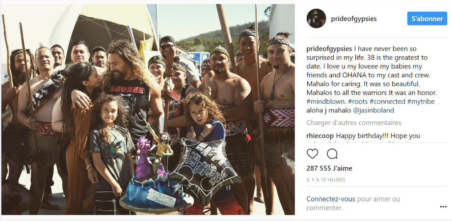 EagleWolf a écrit:La famille de Momoa lui a fait la surprise de venir lui fêter son anniversaire sur le lieu de tournage :