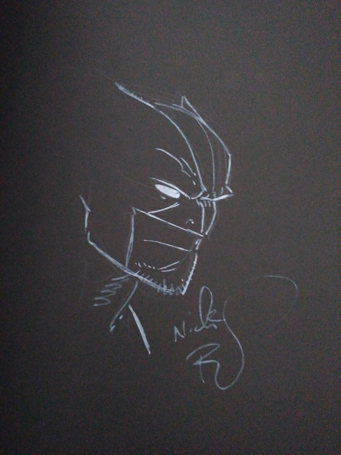 J'étais aujourd'hui à Malbrouk pour le festival de la BD et j'ai eu la chance d'y rencontrer les dessinateurs Nick Bradshaw, un gars vraiment adorable qui a signé tous mes kiosques et m'a fait deux très belles dédicaces dans mes Wolverine & the X-Men, et Stéphane Roux qui était très sympathique et qui racontait plein de détails et d'anecdotes sur le métier !