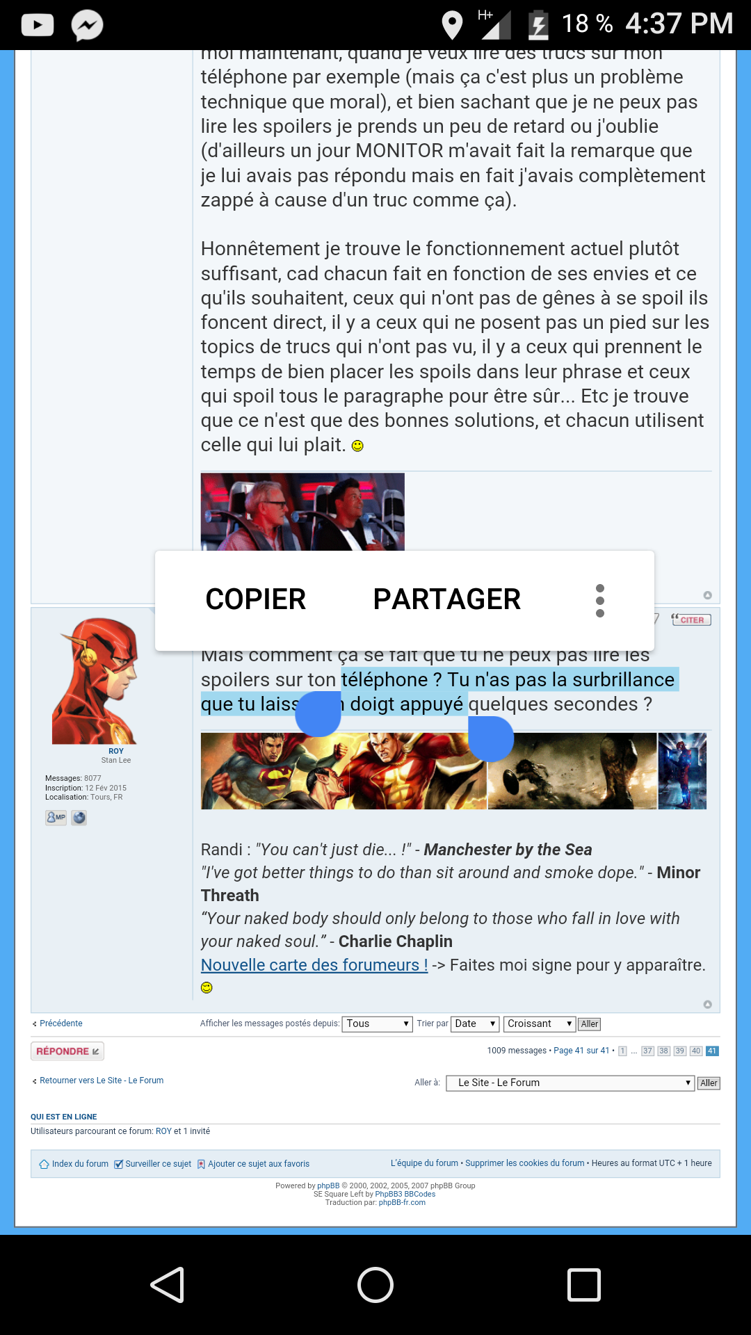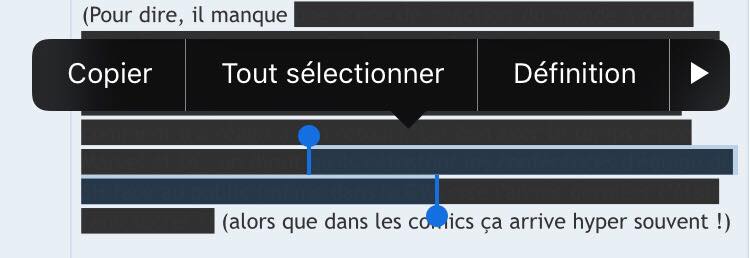 Mais comment ça se fait que tu ne peux pas lire les spoilers sur ton téléphone ? Tu n'as pas la surbrillance -> quand tu laisses ton doigt appuyé quelques secondes ?