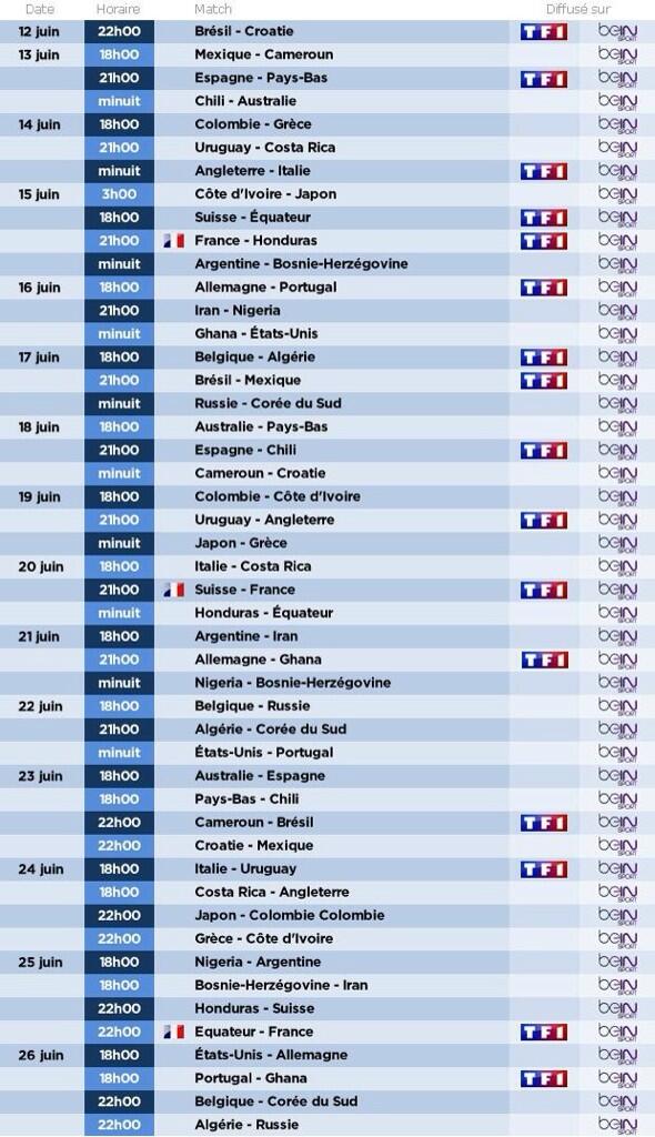 Si t a les chaines allemande genre ZDF ou italienne Rai Uno c est bon tu peux voir l intégralité de la coupe du monde.