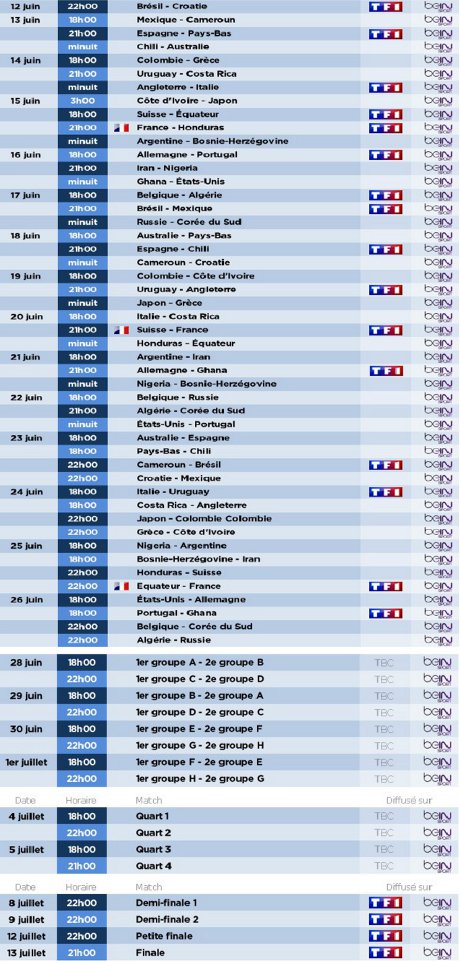 Le jour J est arrivé, pour ce faire voici le calendrier complet de la compétition...