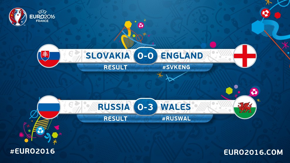 Le Pays de Galles; porté par un Bale toujours aussi constant et performant (buteur à chaque match), chipe la 1ére place à l'Angleterre...le "Bus Slovaque" a pour sa part bien tenu le choc face aux assauts anglais.