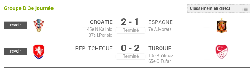 Pu voir qu'une mi temps de Rep' Tcheque vs Croatie, tout à l'heure méme chose pour Espagne vs Turquie.