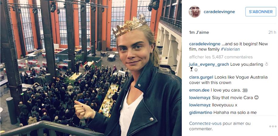Cara Delevingne sur Instagram -  ..and so it begins! New film, new family #Valerian.jpg