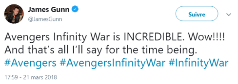 Rogue One a écrit:Le coup de James Gunn je me méfie mais d'un autre côté il a dis du bien de films que j'adore.. et c'est pas un bon a rien question ciné donc bon..