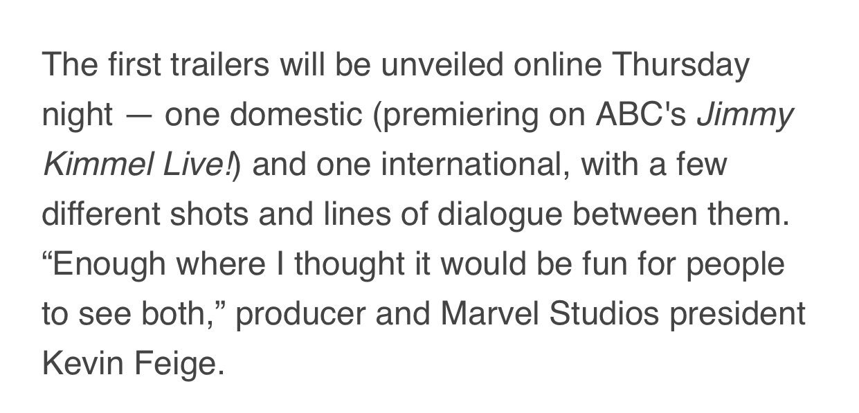 L'intérêt, c'est de rendre inutile toute fuite éventuelle. Si Marvel Studios garde le vrai trailer (international trailer) dans leurs locos, pourquoi des personnes malintentionnées essayeraient de faire fuiter la "version courte" prévue pour l'émission ?