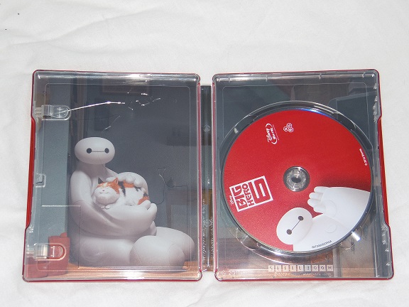 Enfin, je poste les photos de mon dernier steelbook Disney qui n'est autre que Les Nouveaux Héros ( ou Big Hero 6 ) trouvé sur Amazon.es à 27 euros ports inclus et qui m'évite d'avoir la jaquette française horrible. En effet, je le trouve très réussi ( surtout le verso ) avec des effets débossés sur le recto comme pour Baymax et Hiro ou le titre. L'intérieur est aussi bien choisi avec un passage assez amusant du film :)
