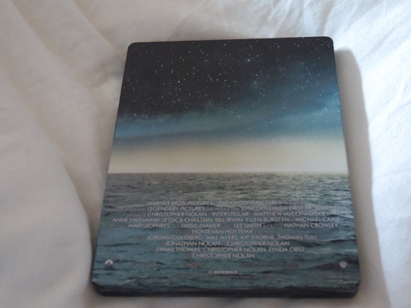 Enfin, je terminerais ce post avec les photos de mon nouveau steelbook que l'on m'a offert ce week-end : Interstellar. J'avais hésité entre cette version et le digibook anglais mais au final, je ne regrette pas ce steelbook ;) Au niveau des finitions, le steelbook est mat et ce aussi bien sur la tranche que sur le recto et le verso. Le visuel choisi est pas mal même si j'ai toujours un peu de mal avec la tête de Matthew MacConaughey. Il y a certains reflets métalliques notamment au niveau de la mer et je pense que cela aurait mieux rendu si l'ensemble était verni. Le verso est la suite logique du recto, sans réelle surprise donc. Pour l'artwork interne, j'aime beaucoup ; il reste simple mais agréable à regarder ;) Au final, un beau steelbook même si j'aurais préféré un visuel plus proche de celui du digibook anglais.