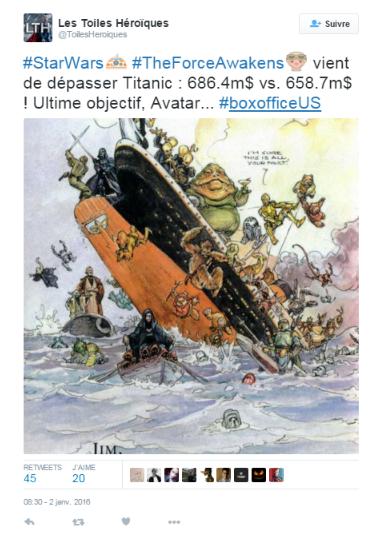 Les Toiles Héroïques sur Twitter - -#StarWars #TheForceAwakens vient de dépasser Titanic - 686 4m$ vs. 658.7m$ ! Ultime objectif, Avatar... #boxofficeUS https---t.co-QOV5v7B6lI-.jpg