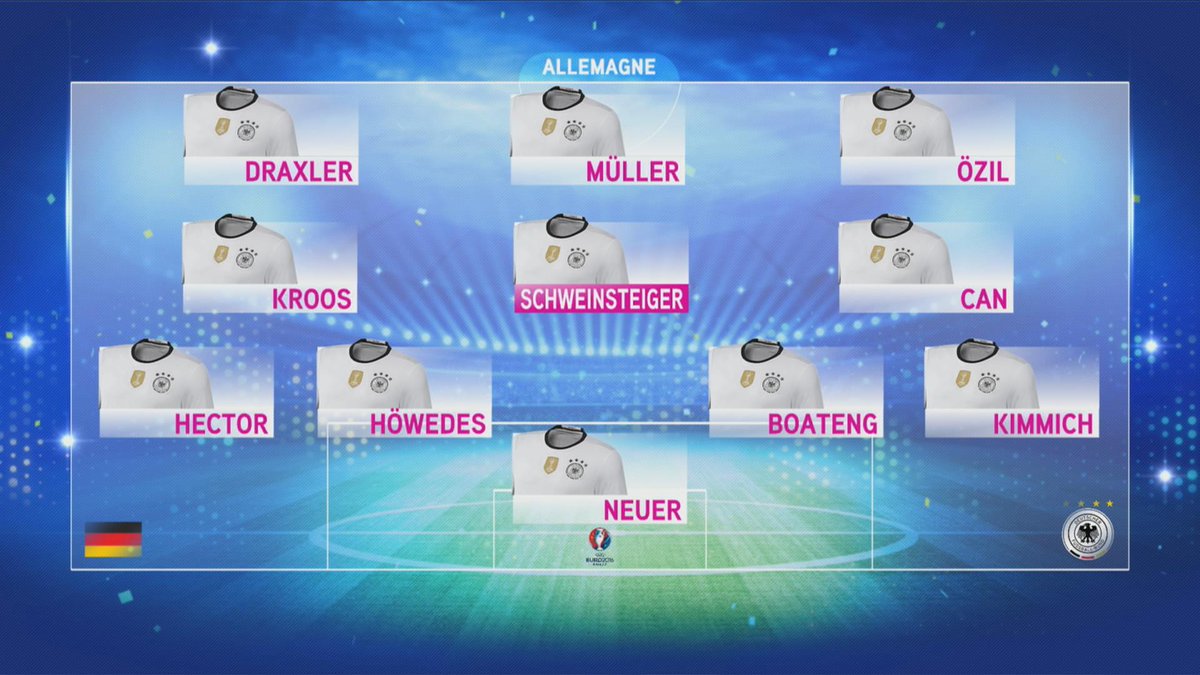 L'Allemagne n'a pas été flamboyante car y'avait en face une formidable équipe italienne, donc l'adversité qu'à connu la Mannschaft est d'un tout autre calibre que celle qu'à connu l'EDF, qui est tombé sur une équipe Islandaise combative mais limitée...donc faut pas trop juger l'Allemagne sur le match de l'Italie, car l'EDF avec sa défense vacillante aurait aussi souffert (et aurait peut être été éliminée) contre les Italiens et leur rigueur tactique monstrueuse imposée par le maestro Conte...
