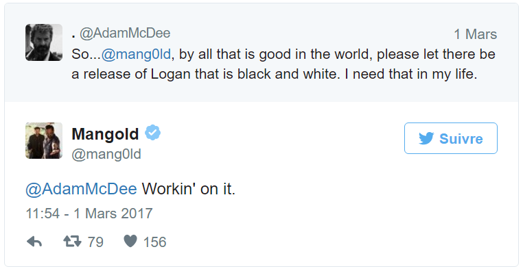 Mangold travaille sur une version en Noir et Blanc ^^ :