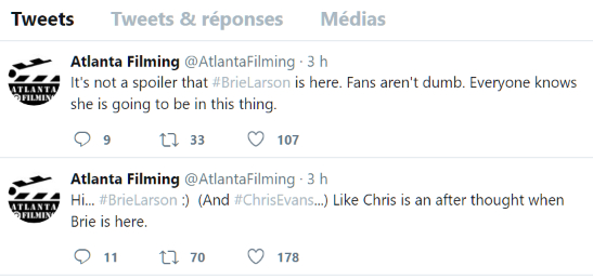 Thor2.0 a écrit:EagleWolf a écrit:Pas de photo ni précisions.. mais j'pense qu'elle a juste été vue sur les lieux.. voilà les tweets d'Atlanta Filming :Chris Evans sans barbe