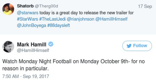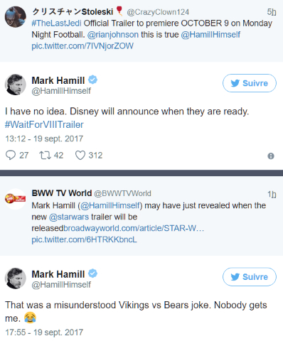 Les Derniers Jedi - Mark Hamill semble avoir dévoilé la date de diffusion du prochain trailer.jpg