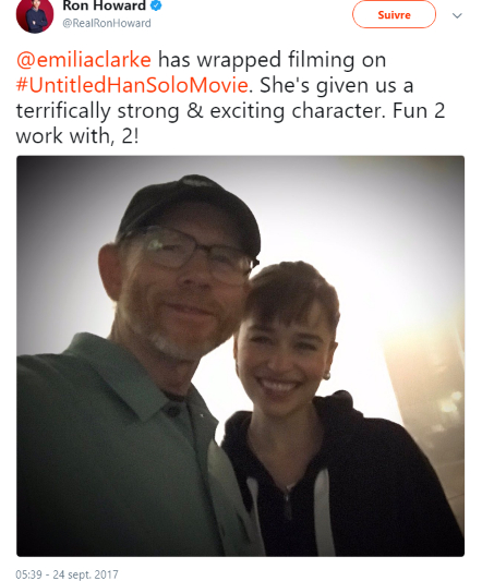 Ron Howard sur Twitter - -@emiliaclarke has wrapped filming.jpg