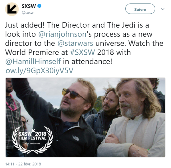 EagleWolf a écrit:Et il sera très intéressant de voir dès que possible ce documentaire intitulé The Director and The Jedi (de Anthony Wonke) sur le making of du film et qui sera présenté au SXSW Film Festival le 12 mars prochain :