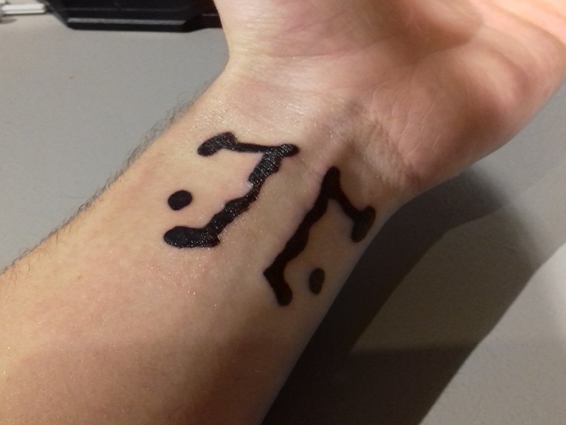 le symbole de Rorschach sur le poignet :)
