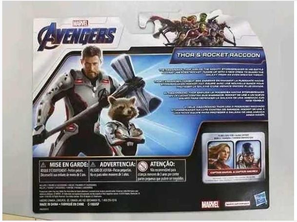 "The Asgardian Thor wields the mighty Stormbreaker in his battle against new foes." and then the one for the lone Guardian of the Galaxy, it says, "Rocket teams up with a new crew to guard the galaxy from an even greater threat."