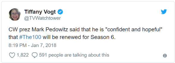 Jason Rothenberg : "Malheureusement, cette décision ne m'appartient pas. J'aime ces personnages et ce monde ainsi que le reboot que nous offre le bond dans le temps de six ans. Cela nous permettrait d'aller de l'avant de saison en saison et je vois pas de raison pour laquelle cela devrait s'arrêter. Si cela devait se terminer, on partirait avec le finale de la saison 5. Il sera épique et il pourra probablement servir de vraie fin. Je ne l'espère pas ! Heureusement, ils donneront certainement des indications en temps voulu afin que je puisse offrir un Series Finale aux téléspectateurs. Mais comme vous le savez, ce sont des décisions qui relèvent du domaine financier et non du domaine créatif."