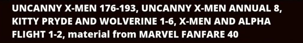 Une de ses vidéos est confirmée de contenir Uncanny X-Men #207 donc on parle bien sûr de Uncanny X-Men Omnibus Vol 5 :D :D :D Je suis vraiment curieux de voir le mapping pour celui-ci car il nous manque un énorme morceau et Omar avait l'air de dire que Marvel n'hésiterait pas à le séparer en deux volumes pour milker les fans au maximum car ils savent que ça va vendre.