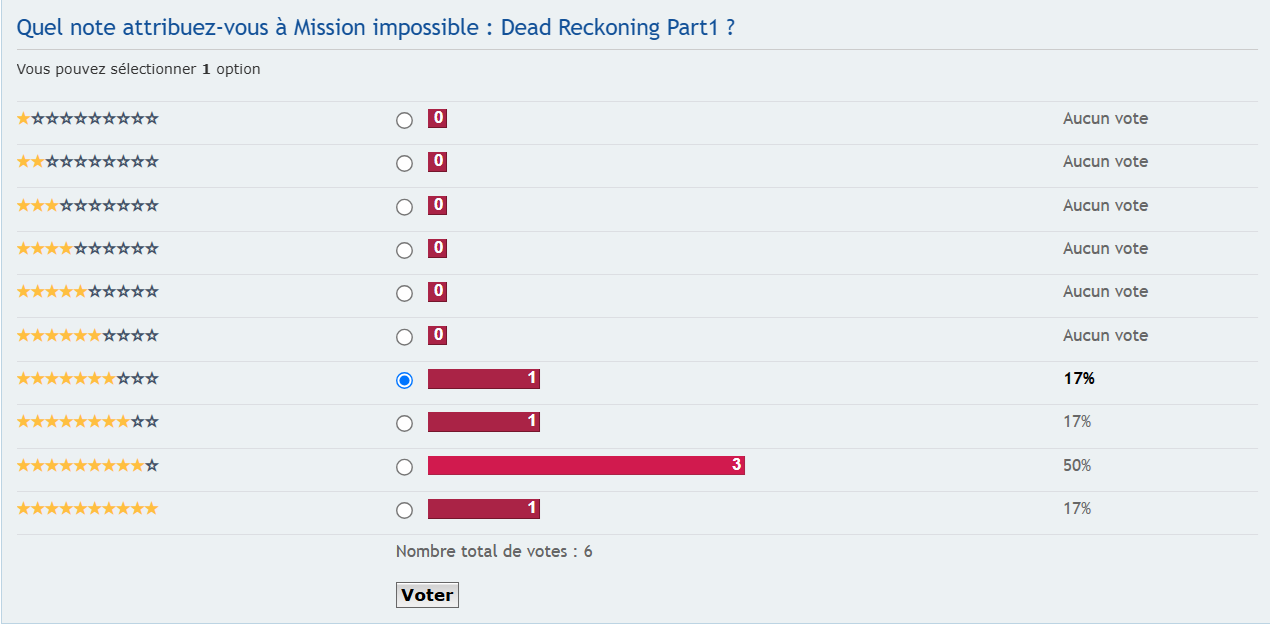 Quelle note attribuez-vous à Mission impossible : The Final Reckoning ?